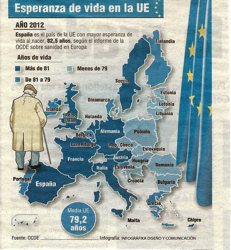 Gráfico España, de nuevo el país de la UE con mayor esperanza de vida